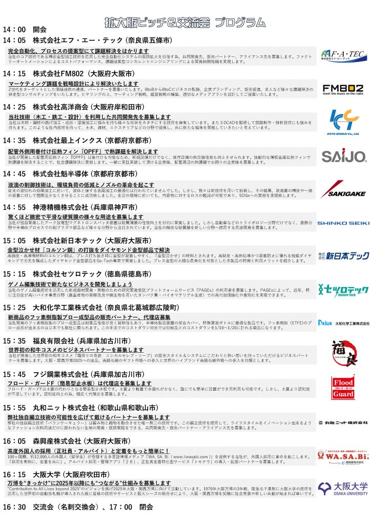 今年3月14日(火)午後に経済産業省 近畿経済産業局 主催で行われる拡大版ピッチ&交流会(未来企業サロン)に弊社が登壇し、プレゼンします。